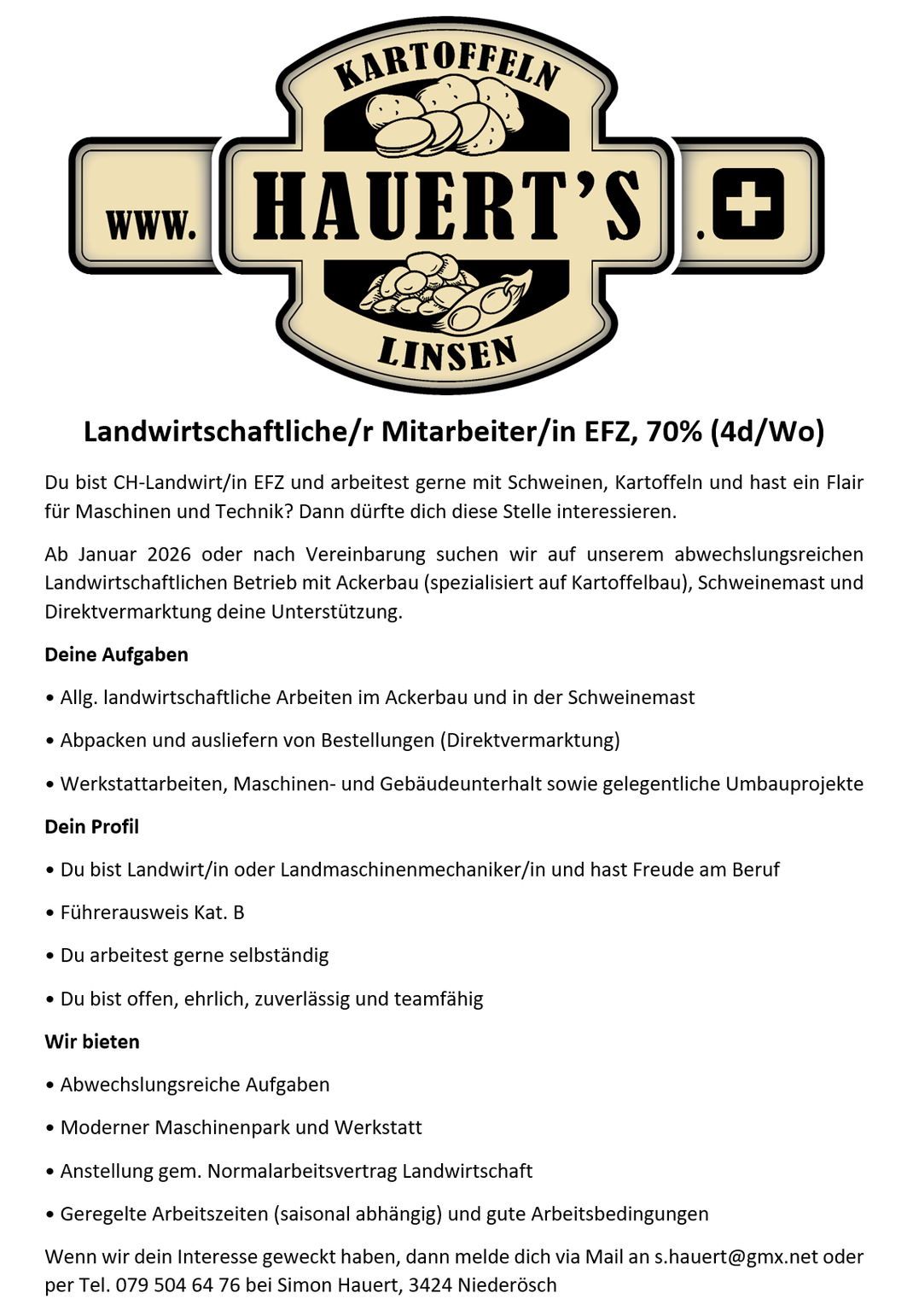 Sie betreiben ein Restaurant, Catering oder einen Dorfladen? Gerne dürfen Sie Kartoffeln und Linsen in grösseren Mengen direkt bei uns bestellen.